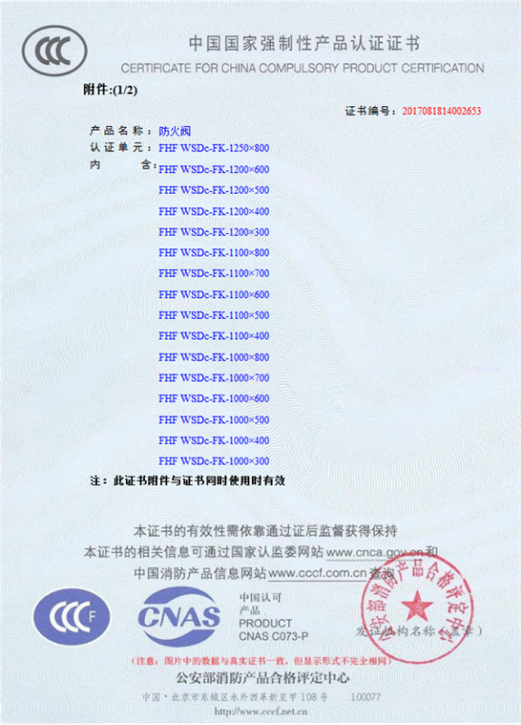 產(chǎn)品全通過國(guó)家消防檢測(cè)中心檢測(cè),獲得CCC證書